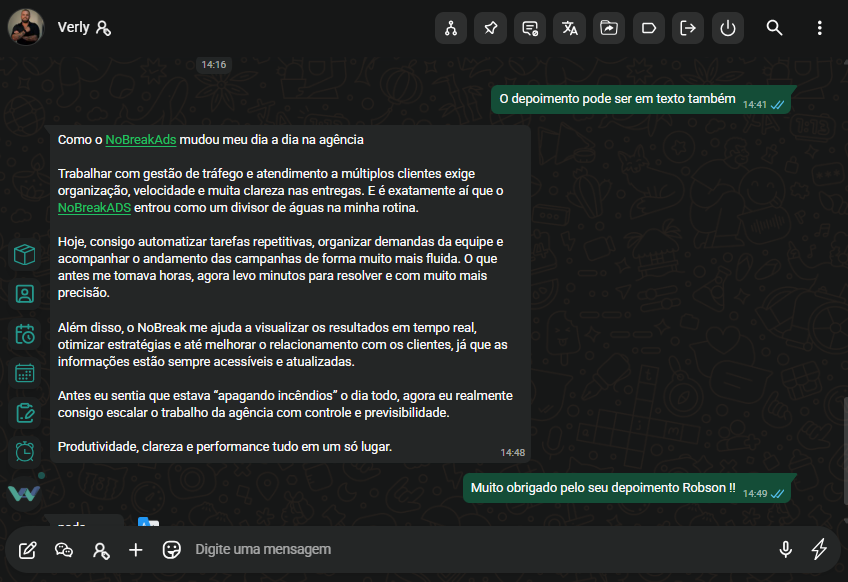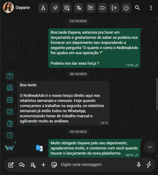 Hoje, a NoBreakAds ajuda centenas de agências e gestores de tráfego a economizar tempo e aumentar seus resultados por meio de automações inteligentes.