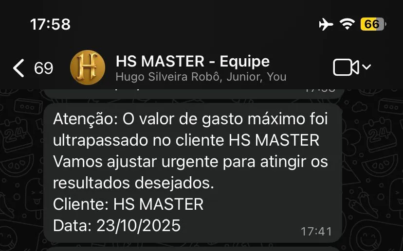 Você recebe o aviso antes da campanha parar. Assim, pode agir rápido e não perder vendas por falta de verba.