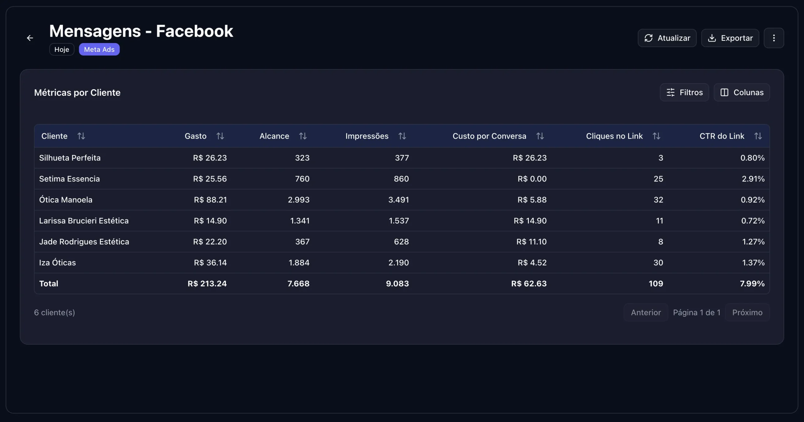 Veja todos os clientes em uma tabela comparativa e decida onde investir mais
